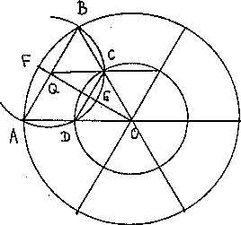 omskreven cirkel med centrum i Q på linien OEQF,